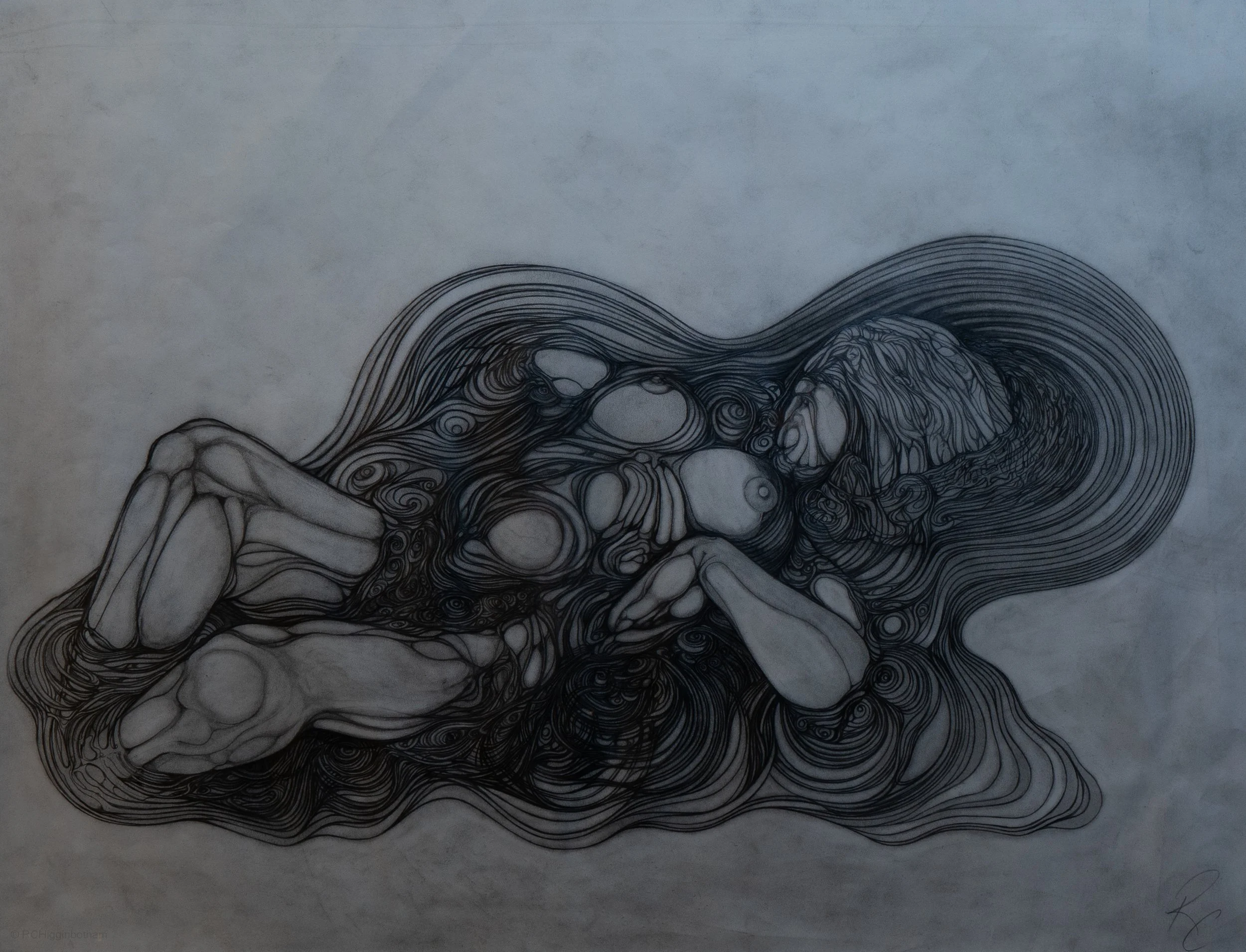 Heavy Rain, 2024. Ink and Acrylic on linen canvas - 72 x 48 in.